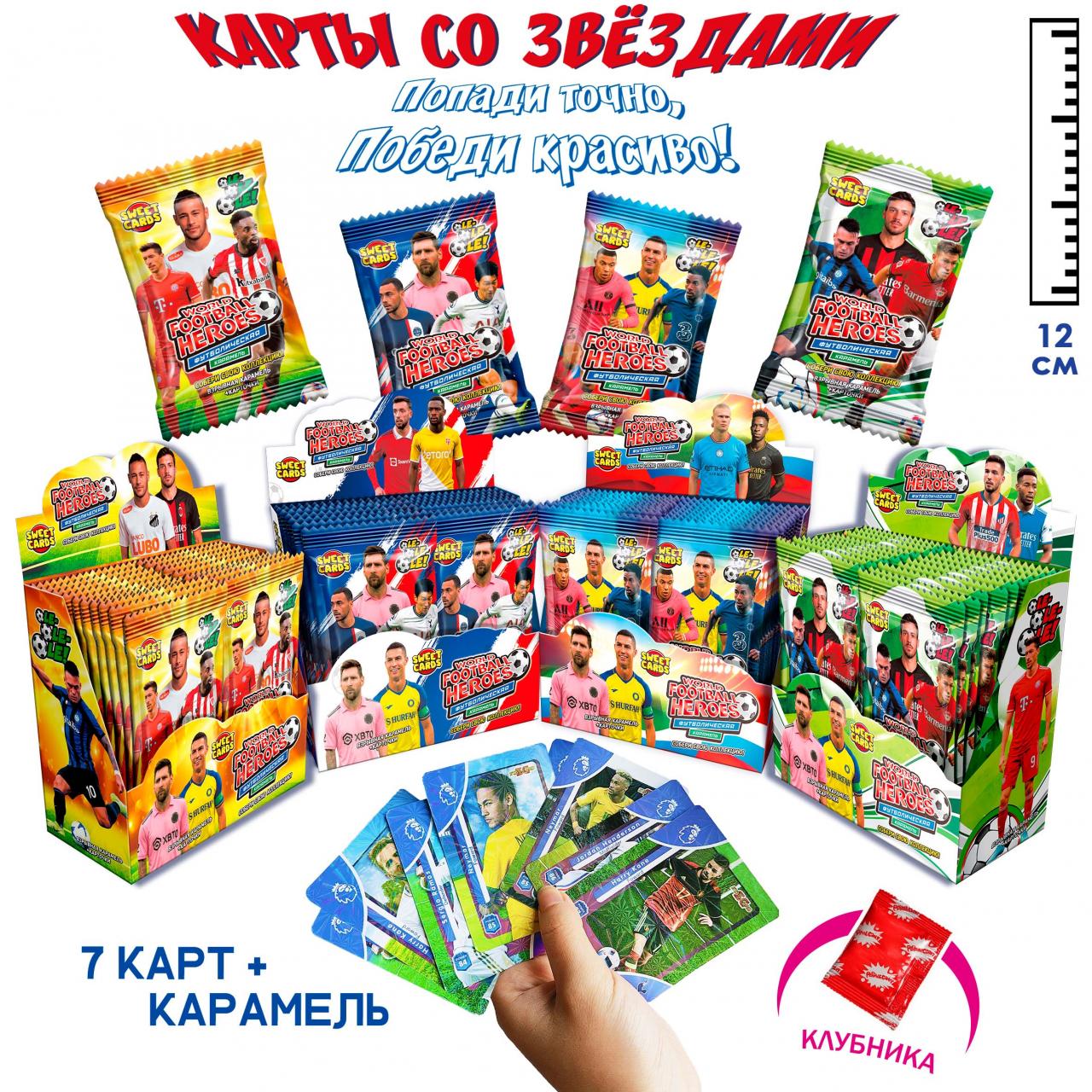 Карамель леденцовая с карточками с изображением персонажей и людей Sweet Candy Cards World football heroes (Китай) 1г0,00 руб. за штуку (в упак. 24 шт.) |
